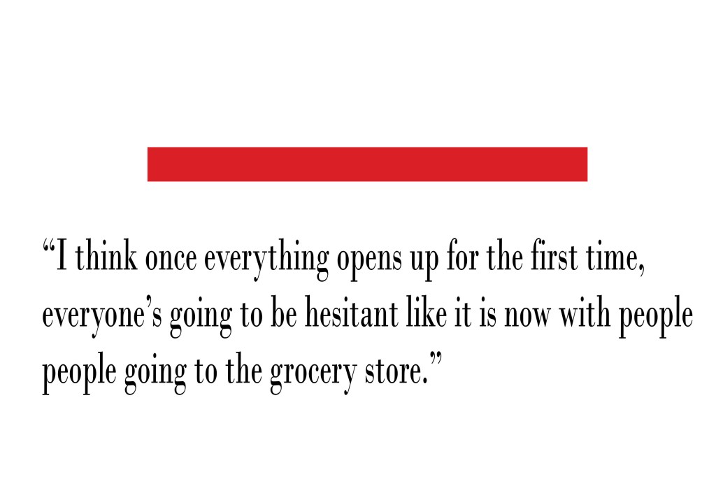 Josh predicts, “I think once everything opens up for the first time, everyone’s going to be hesitant like it is now with people going to the grocery store, and some people might now believe it is safe to go out…”